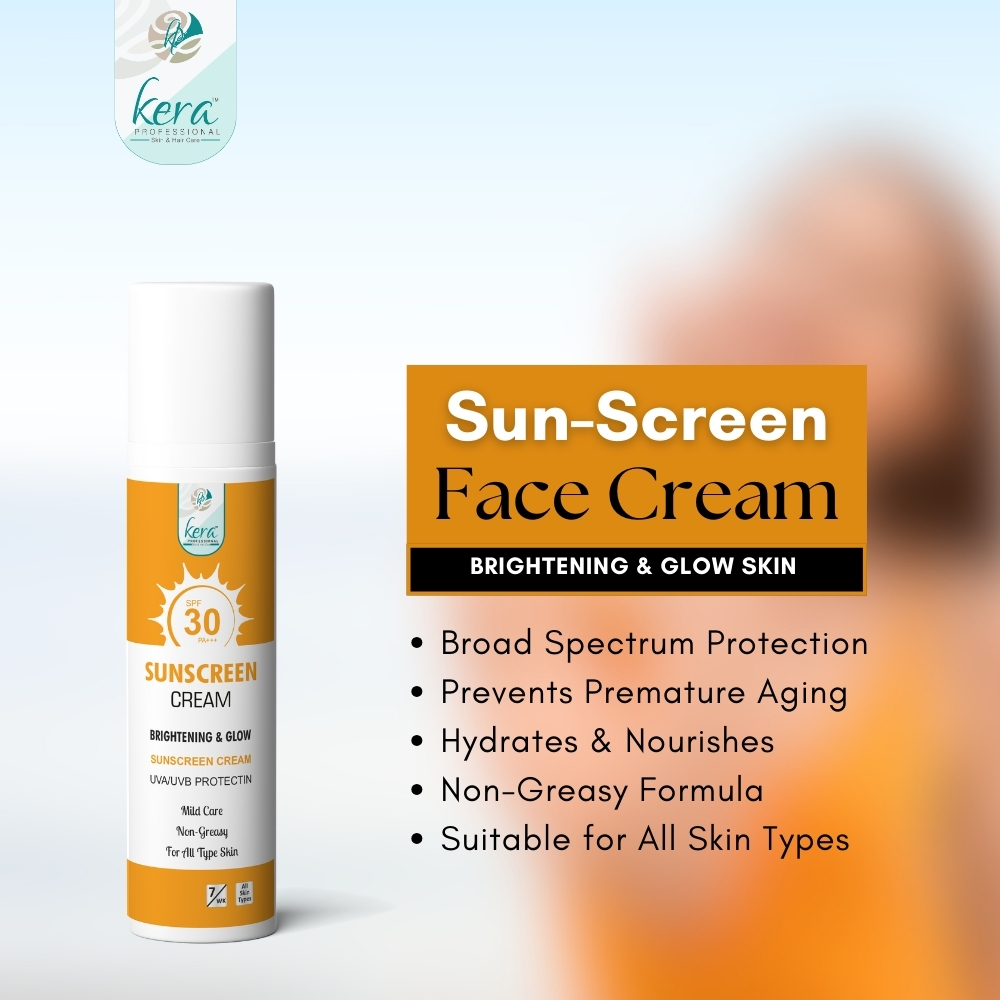 Perfect for daily use, Kera Professional SPF 30 PA+++ Sunscreen Cream ensures your skin stays protected, nourished, and glowing all day long.
